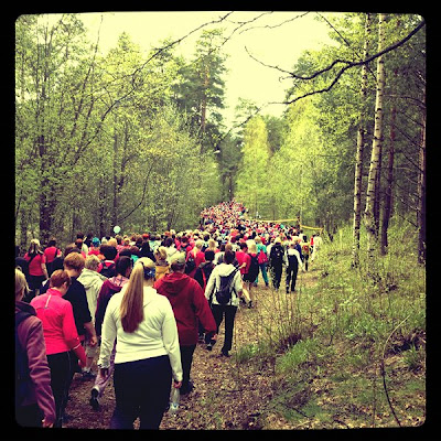 Osallistuin tänään ensimmäistä kertaa ikinä Likkojen Lenkille. Lenkki oli kyllä hauska, kunhan selvittiin siitä alkujärkytyksestä, minkä väen(naisten)paljous aiheutti. Vielä Pyynikin kentällä harhaillessa ajatus tuon kantturalauman (kaikella rakkaudella) mukana kulkemisesta tuntui ihan mahdottomalta ja vähän kyllä yritimmekin jättäytyä innokkaimmista jälkeen. Esiintyjät (Tähkä, Pakarinen, Redford & Rainio) pyrimme parhaamme mukaan välttämään. Kaiken kaikkiaan kokemus oli kuitenkin positiivinen. Ilma oli kaunis ja maisemat taattua laatua.